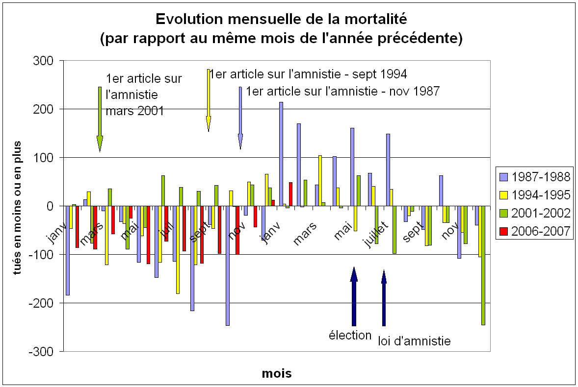 réduction observée de la mortalité est de 10 tués, l'accroissement est de 773